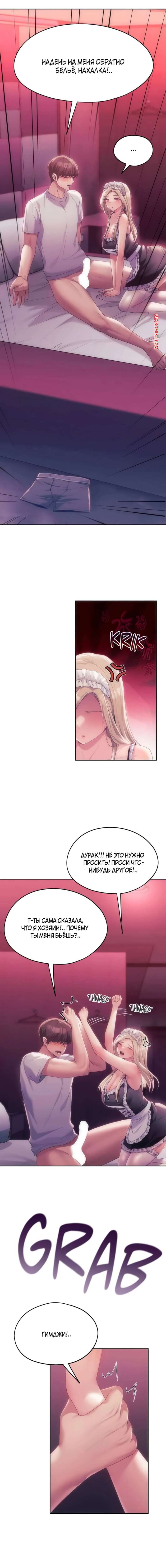 Порно комикс Идеал моей мечты. Часть 42 и 43 и 44. onelbuter coea Горячая блондинка возбуждена и хочет трахаться. Она надела сексуальный костюм горничной и отправилась в комнату к парню, чтобы разбудить его отсосом и заняться сексом.