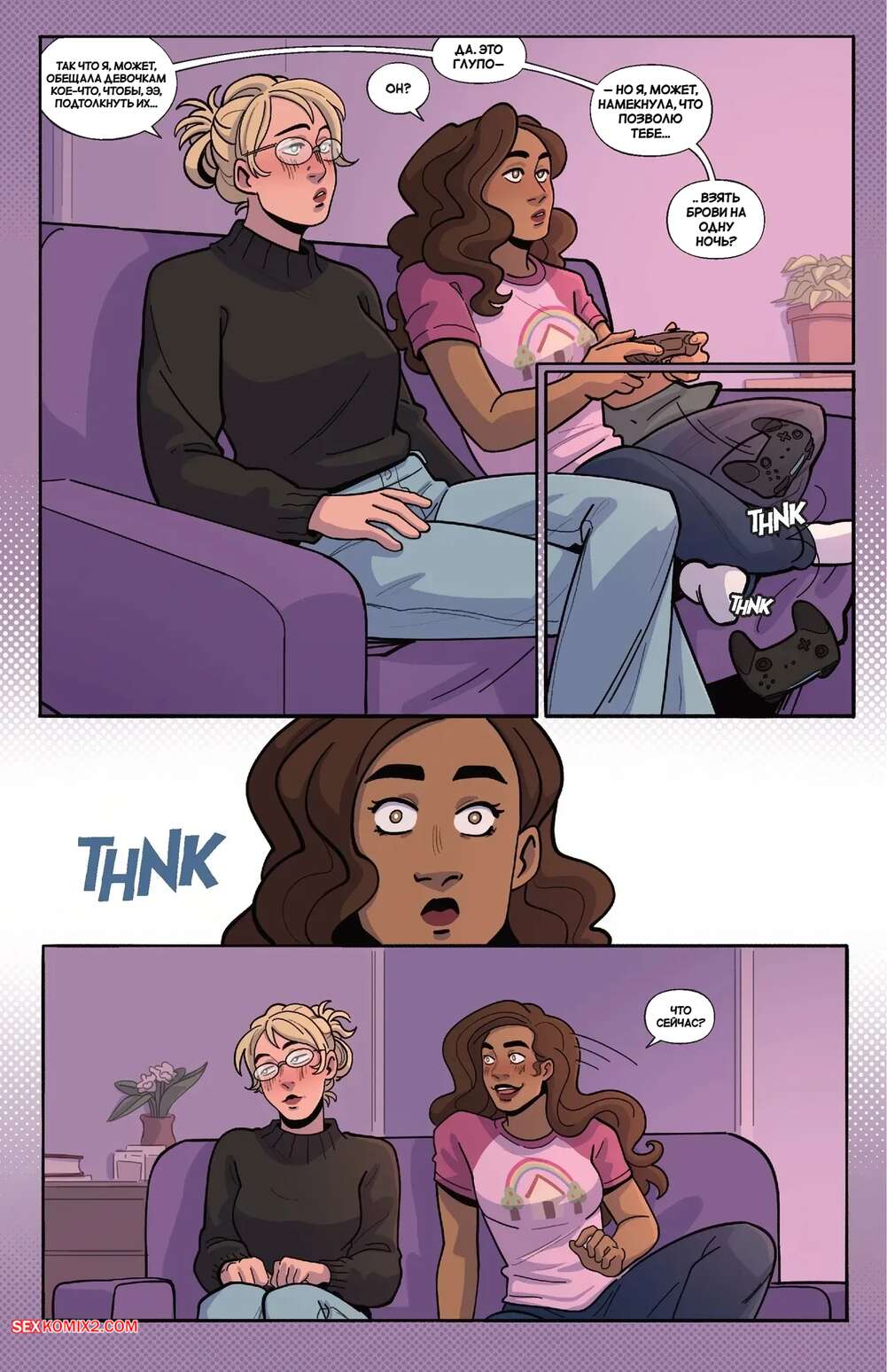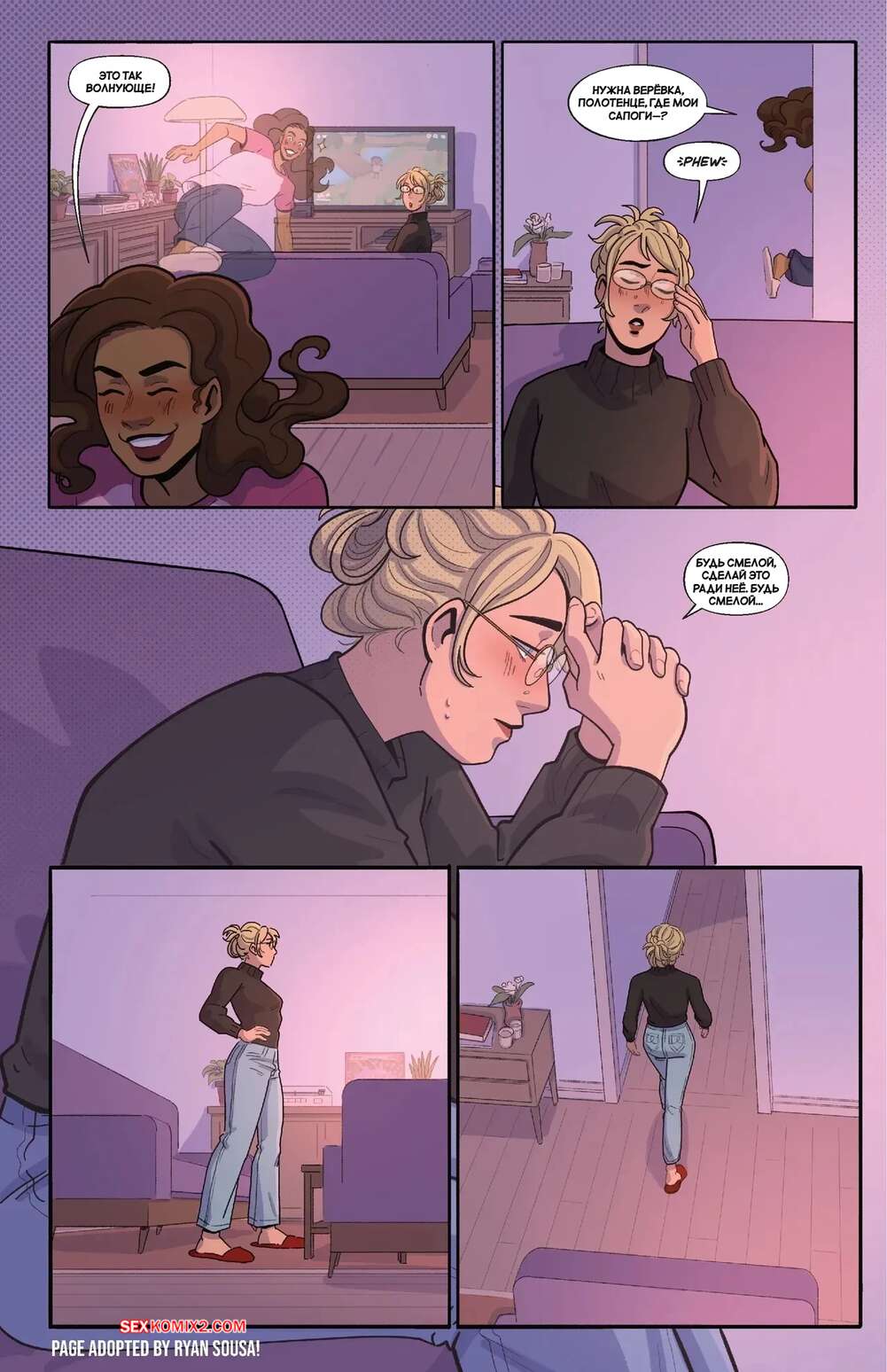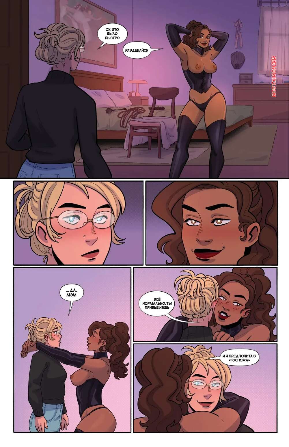 Порно комикс Порно. Часть 2. Smut. Bianca Milanez Блондиночка отправилась домой к своей подруге, желая пошалить с ней. Темнокожая брюнетка надела наряд доминатрикс и стала заигрывать с голой блондиночкой, которая позволила делать с ней что угодно.
