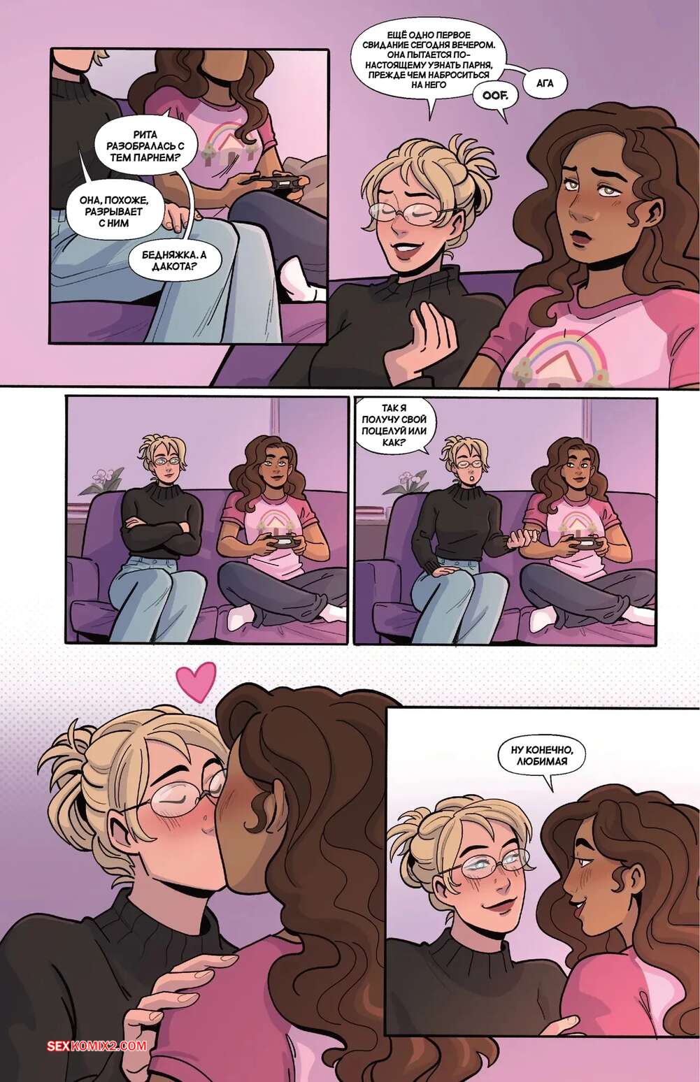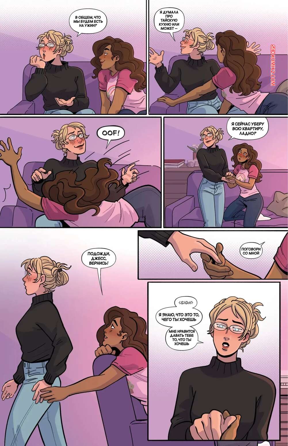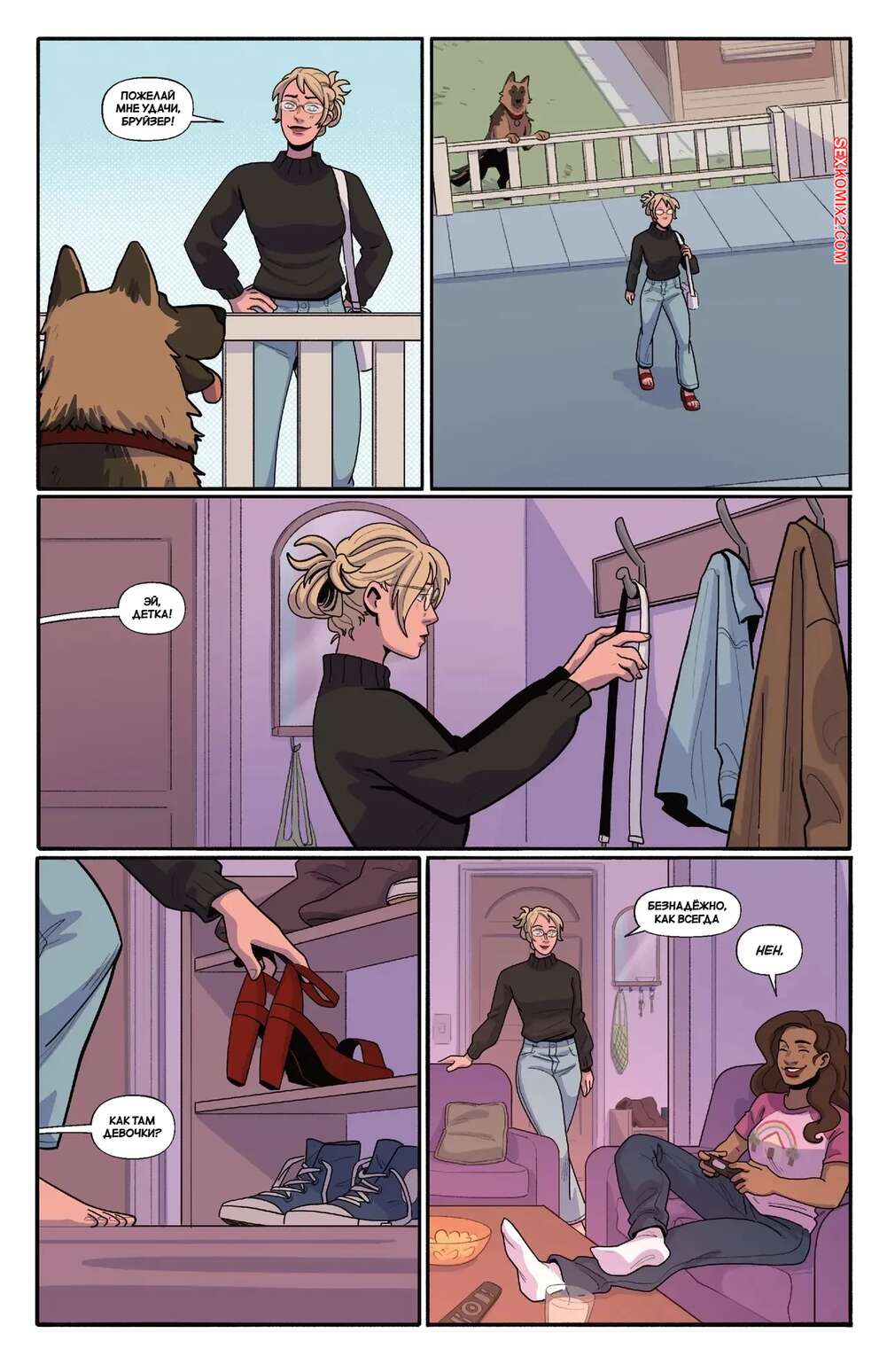 Порно комикс Порно. Часть 2. Smut. Bianca Milanez Блондиночка отправилась домой к своей подруге, желая пошалить с ней. Темнокожая брюнетка надела наряд доминатрикс и стала заигрывать с голой блондиночкой, которая позволила делать с ней что угодно.